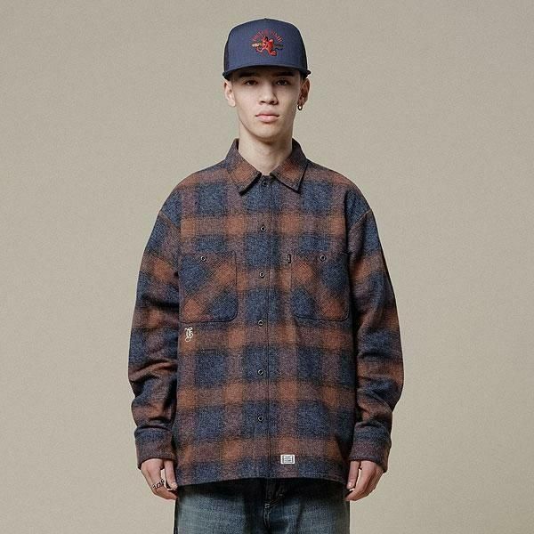 【CLUCT】(クラクト)"ROWLAND [L/S SHIRTS]"刺繍チェックネルシャツ【BROWN】【送料無料】