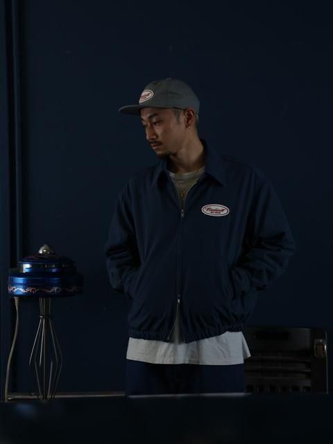 フロント左胸にはオーバルロゴのワッペン、バックにはガレージの鍵穴をモチーフにしたグラフィックがチェーン刺繍で入ります。